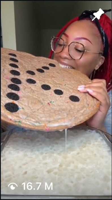 Starts with a stitch of that viral ASMR person dunking a giant cookie in milk (very satisfying, very random).